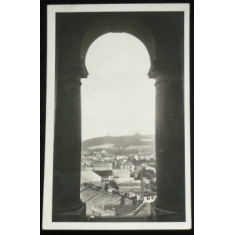 Krnov, fotopohlednice, pohled z věže na město, v pozadí Cvilín, prošlá, Q2