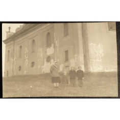 Bruntál, fotopohlednice, lídé před kostelem na Uhlířském vrchu, bez adresních linek, neprošlá, Q1