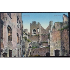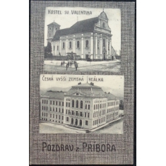pohled ke kostelu, prošlá, stržená známka, Q3 - zlomený roh, stopy po nalepení