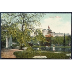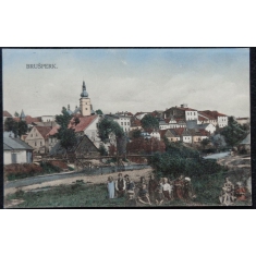 pohled ke kostelu, v popředí děti, vydal Mácha, prošlá, Q1