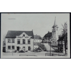 fotopohlednice, hostinec, prošlá, dolepovaná známka, Q2
