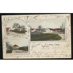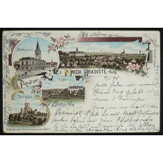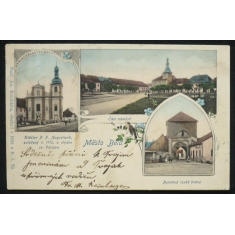 litografická koláž, radnice, hrad, klášter, vydal Schwidernoch, Wien, prošlá, dlouhá adresa, Q3