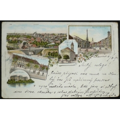 litografická koláž, vydal Novák, prošlá, dlouhá adresa, Q3 - poškozený roh
