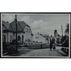 litografická koláž, kostel, škola, nádraží, prošlá, dlouhá adresa, Q2