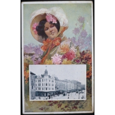 fotopohlednice, hotel Palace, lidé, automobily, prošlá, stržená známka, Q2