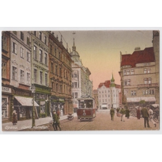 1911 Opava (Troppau), sestava 2 pohlednic, mj. tramvaj a cisterna