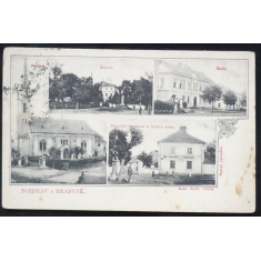 Hrabyně, 4okénková, zámek, škola, kostel, hostinec, prošlá, stržená známka, Q2