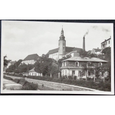 fotopohlednice, pohled ke kostelu, neprošlá, stržená známka, Q1