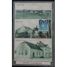 3okénková, škola, hostinec V. Valty, celkový pohled, prošlá, stržená známka nalepená vpředu, Q2