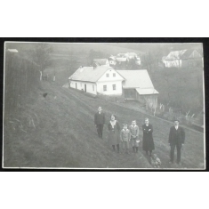 Vendolí (Stangendorf), fotopohlednice, rodina před stavením, nepoužitá, Q2