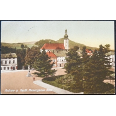 náměstí, pohled ke kostelu, text česko - německo - esperanto, nepoužitá, Q2 - lehce poškozený roh