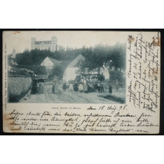 lidé na ulici, v pozadí zámek, prošlá, dlouhá adresa, Q2