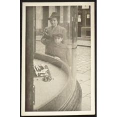 Zlín, fotopohlednice, matka se synem za výlohou, nepoužitá, Q2