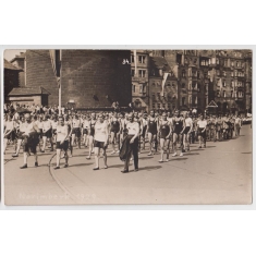 slavnostní průvod cvičenců Dělnické tělovýchovné jednoty v německém Norimberku, velmi zajímavý dokument doby