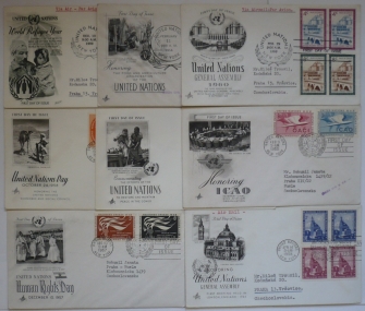 1955 OSN New York, sestava 8 FDC do ČSR