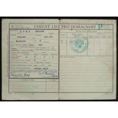 evidenční karta pro příděl uhlí, zajímavý dobový dokument