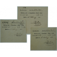 sestava 3 tištěných potvrzení o zaplacení 30Kr do školního fondu