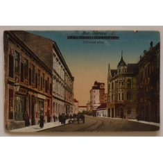 Hlavní ulice, obchody, lidé, dlouhá adresa, prošlá později v r. 1915, Q2