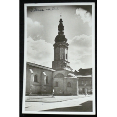 Ostrava, fotopohlednice, kostel redemptoristů, prošlá, stržená známka, Q2