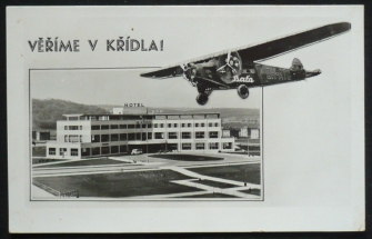 fotokoláž, společenský dům, letadlo, prošlá, Q2