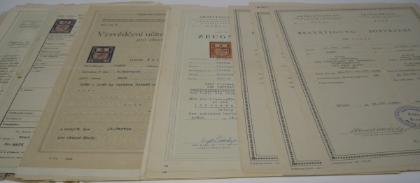 Partie 40 listin - domovské a křestní listy, vysvědčení atd.