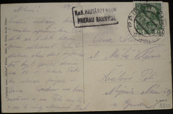 koláž "čtyřlístek", litografie, prošlá, dlouhá adresa, Q2