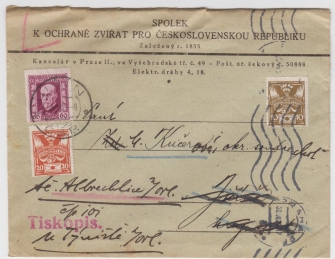 tiskopis do Jičína, PRAHA 30.VII.25, v Jičíně dofrankováno a adresováno do Albrechtic n./Orl., JIČÍN 4.VIII.25; hezké