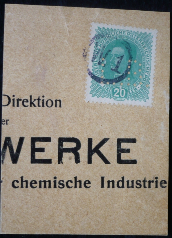 Perfin L.B. na výstřižku