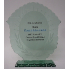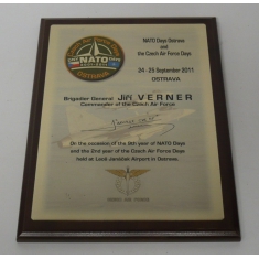 Skleněná plaketa jako šejkův dar v době mise AČR v Zálivu