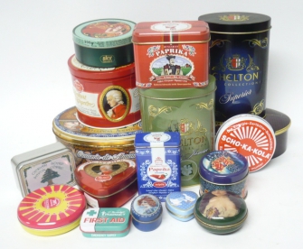 Plechové krabičky, sestava 17 kusů krabiček