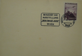 kartička se známkou 5gr, příležitostné razítko WIEN/ AUSSTELLUNG "DER EWIGE JUDE" a kašet, nepopsaná