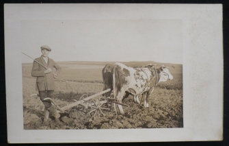 fotopohlednice, muž s pluhem taženým párem volů, nepoužitá, Q2