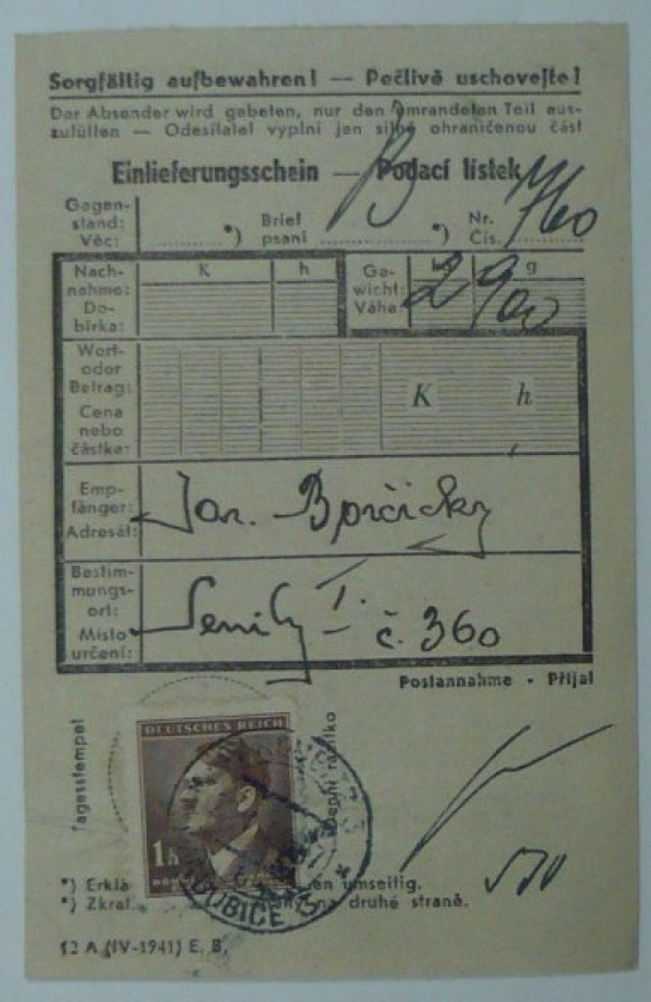 razítko PARDUBICE 26.I.44