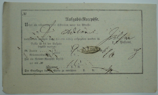 1858 Podací lístek KAADEN