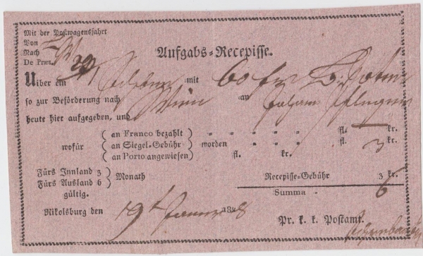 1828 Podací lístek MIKULOV