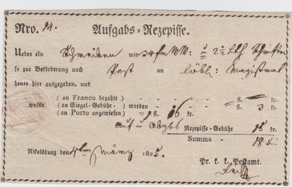 1825 Podací lístek MIKULOV