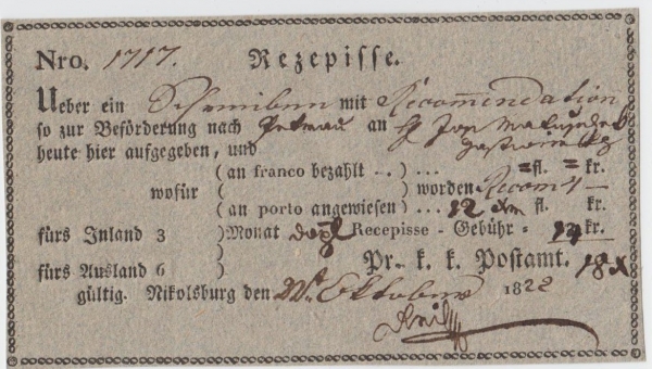1822 Podací lístek MIKULOV