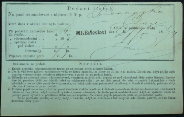 1867 Podací lístek MLADÁ BOLESLAV