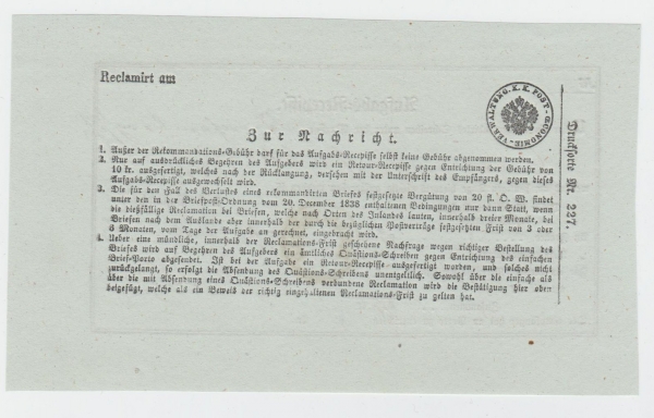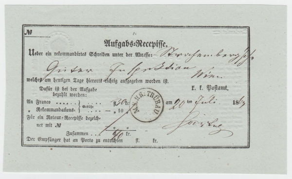 1863 Podací lístek MORAVSKÁ TŘEBOVÁ
