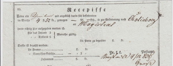 1836 Podací lístek NOVÉ MĚSTO