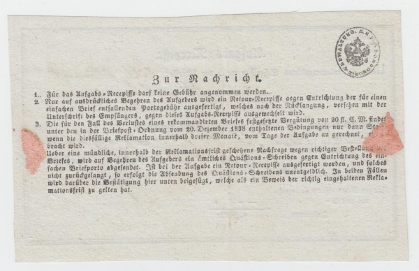 1844 Podací lístek NOVÉ MĚSTO NA MORAVĚ