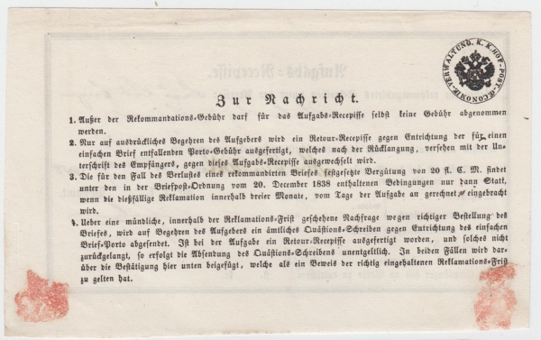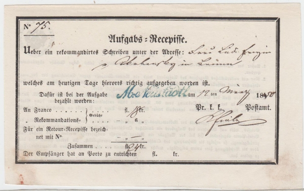 1850 Podací lístek NOVÉ MĚSTO NA MORAVĚ