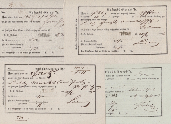 1854 Podací lístky MORAVSKÁ TŘEBOVÁ