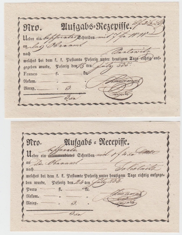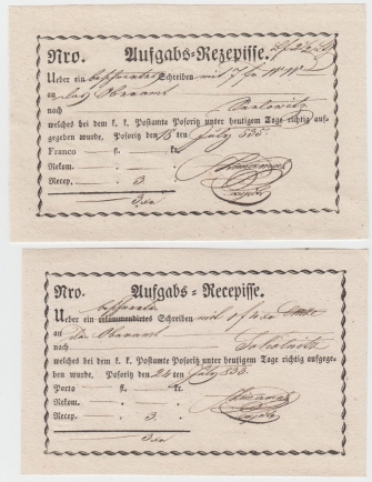 1833 Podací lístky POZOŘICE
