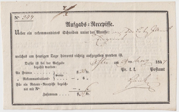 1847 Podací lístek LEDNICE (Eisgrub)