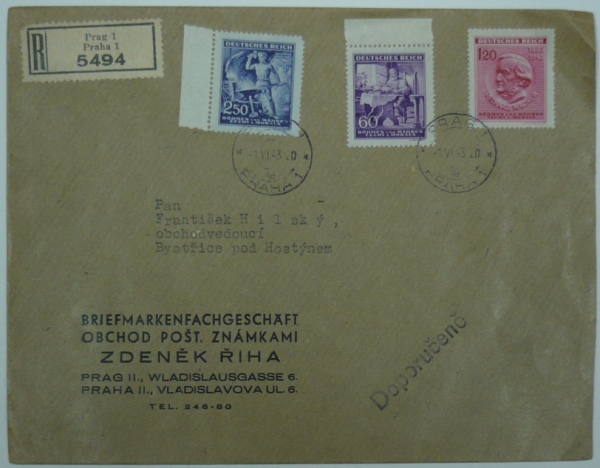 kompletní série na R dopise, razítko PRAHA 1.VI.43; vzadu stopy po přilepení v albu