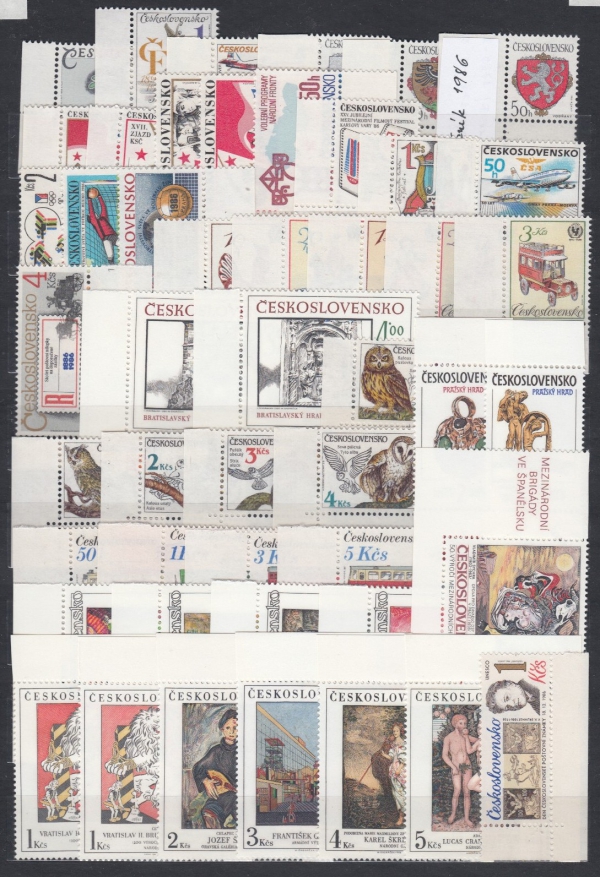 včetně všech aršíků A2747A+B+C, 2748-49 a 2463, všechny znáky rohové (!), 2772 oba typy; luxusní, katalog 535Kč++