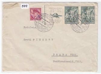 1938 POFIS 303, 1 Kč, a 338, 50h - dvoupáska s kupónem, kombinovaná frankatura