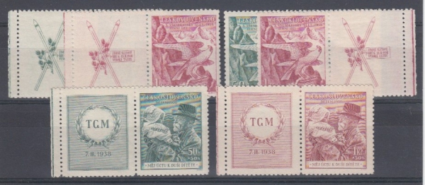POFIS 331-332, Slet, kupóny na obě strany; 333-334, Dětem, levé kupóny; svěží
