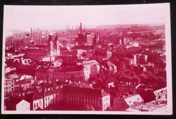 Ostrava, fotopohlednice, růžový odstín, celkový pohled, prošlá, Q2